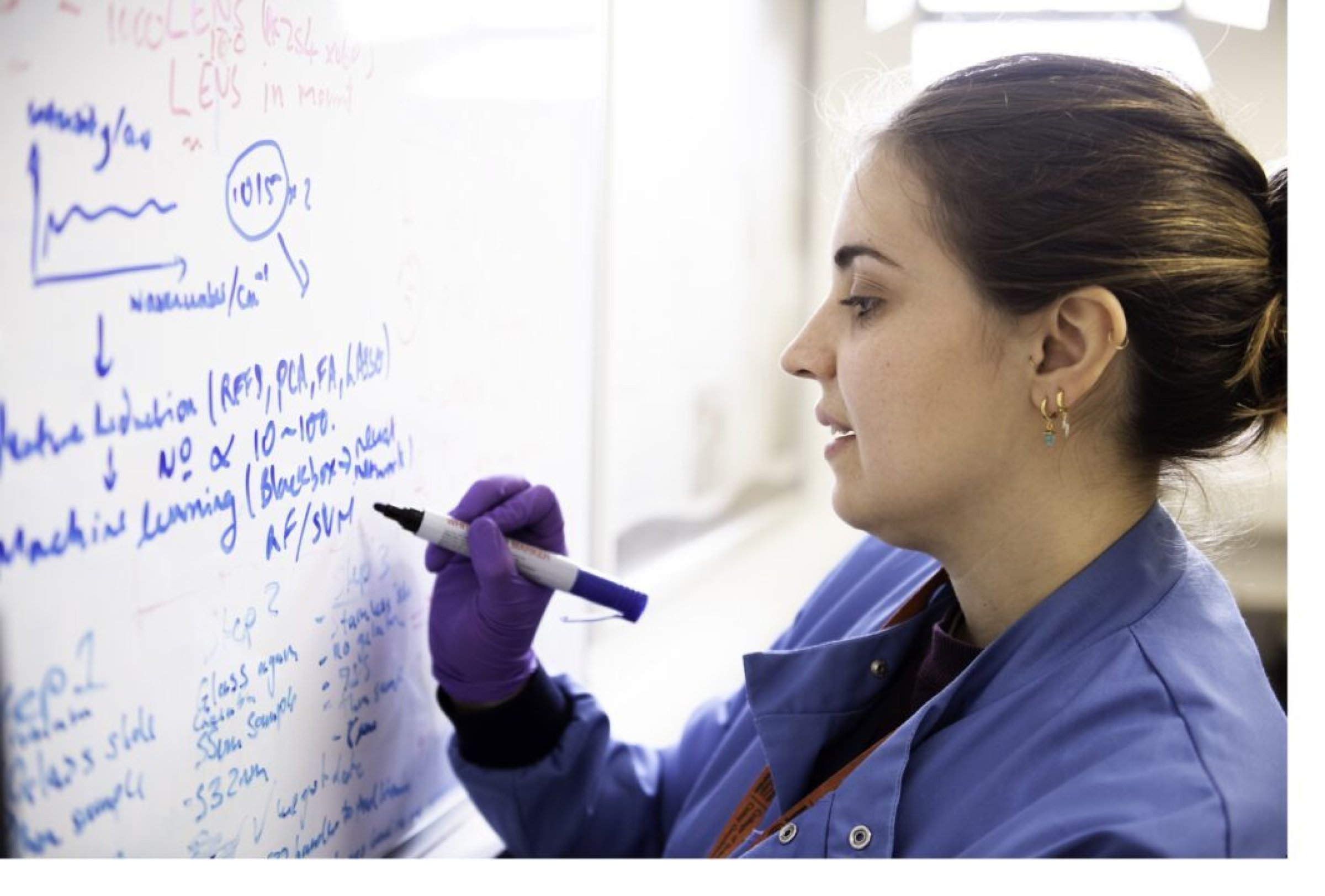 Ar hyn o bryd, mae Ymchwil Canser Cymru yn ariannu tîm o wyddonwyr ym Mhrifysgol Abertawe i ddatblygu prawf gwaed seiliedig ar AI (deallusrwydd artiffisial), sy’n dangos addewid wrth ganfod canser y fron cam cynnar. Mae eu hastudiaethau hefyd yn ymchwilio p’un a all y prawf gwaed ganfod tiwmorau risg uchel cyn-ymledol neu’r carsinoma dwythellol sefydlog, neu DCIS, anymledol.