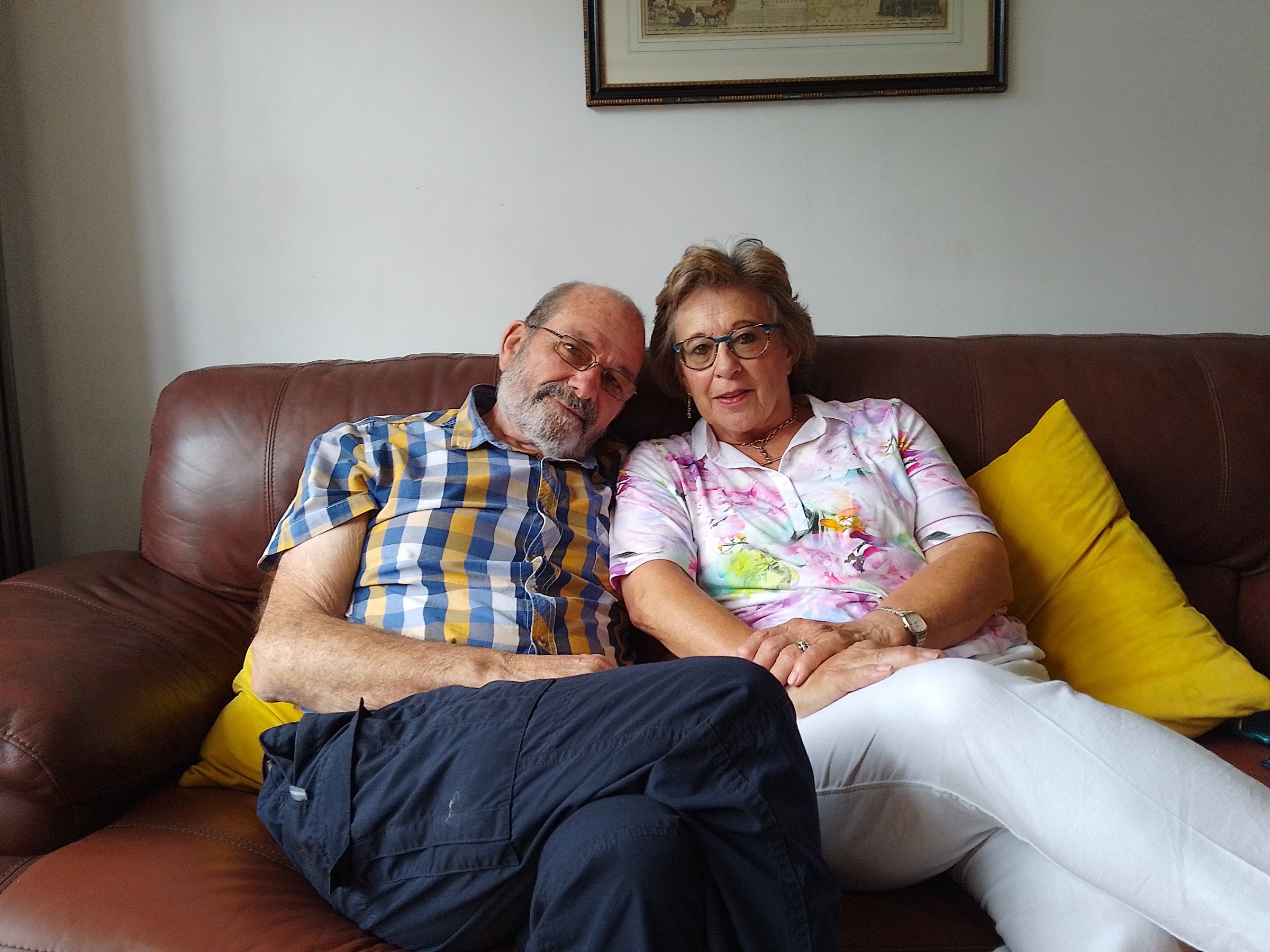 Ychwanegodd Phil ei bod yn anodd gwybod beth i’w ddweud wrth eich partner ar ôl iddi newydd gael diagnosis o ganser Cam 3. Roedd mor anodd iddo. Roedd y driniaeth yn ofnadwy ond fe frwydron ni drwodd a dyma ni’n gwenu unwaith eto.