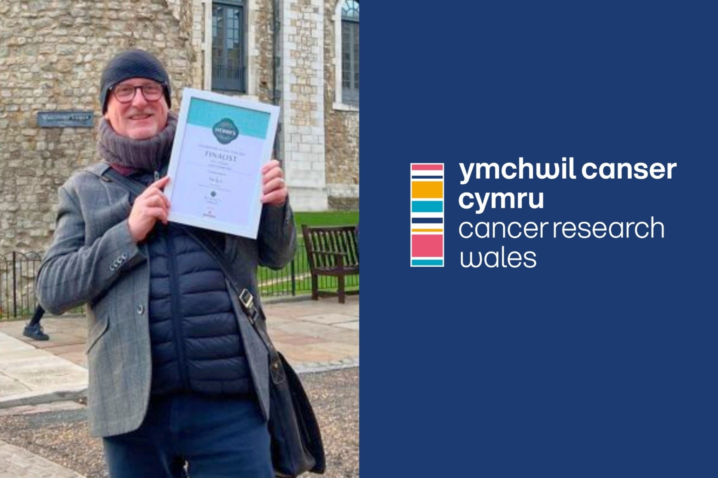 “Mae'n fraint gweithio gydag ef ac ystyriaf fy hun yn lwcus iawn ei fod yn rhan o’n ein tîm codi arian yn Ymchwil Canser Cymru”, meddai Lisa.
