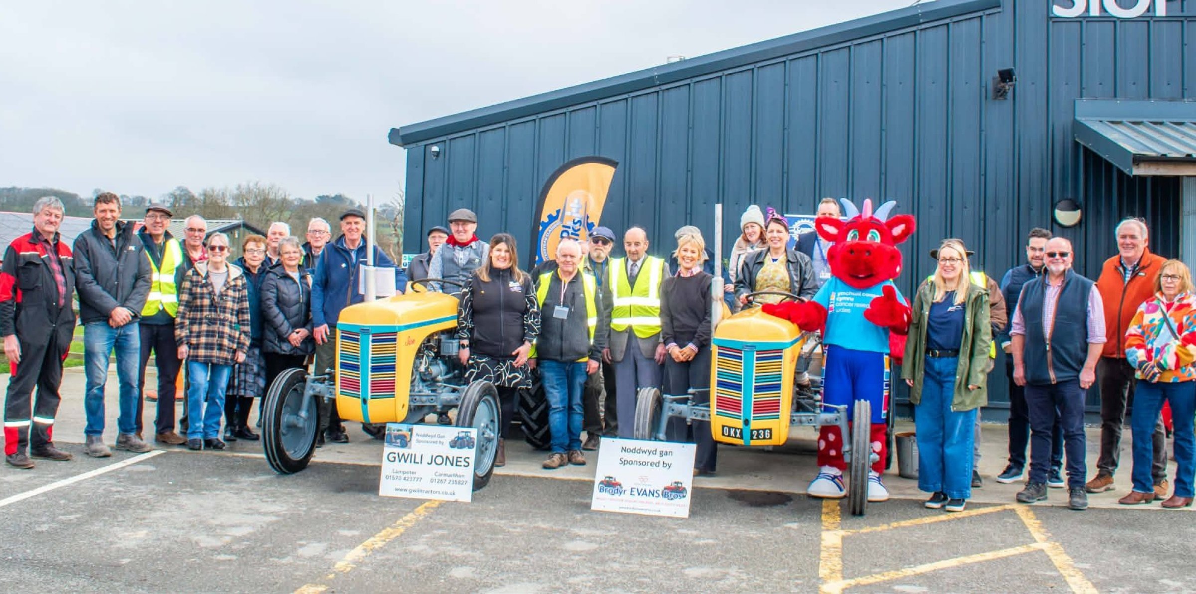 Cardi Cranks have lovingly restored the tractors—named Sion and Sian, and painted them in Cancer Research Wales's colours, especially for the ambitious event.